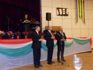 A Magyar Közösség Pártja Dunaszerdahelyi Járási Elnöksége évértékelő ünnepi ülést tartott a Bősi Városi Művelődési Ház színháztermében. A hétfő esti találkozóra a párt járási és országos elnöke meghívta a helyi szervezetek elnökeit, a polgármestereket, a Csemadok Járási Elnökségének tagjait, az Önkéntes Tűzoltó Testületek vezetőit és természetesen a járási elnökség tagjait, valamint a megválasztott megyei képviselőket. Fenes Iván járási elnök üdvözlő beszédében hangsúlyozta, az est valódi küldetése a köszönet kifejezése mindazoknak, akik egész éves munkájukkal segítik a párt eredményeit, különös tekintettel a novemberi megyei választások sikerességére. Köszönetet mondott megyei képviselőtársainak, hogy a választási kampány folyamán egy cselekvő csapatként, fegyelmezetten és kitartóan küzdöttek azért, hogy elnyerjék a választók bizalmát. Hangsúlyozta: A kitűzött feladatot a lehető legjobban teljesítettük. Hiszen a Dunaszerdahelyi járásból mind a nyolc jelöltünk bejutott a Nagyszombat Megyei Önkormányzat képviselő-testületébe. S ez a maximumot jelenti. Berényi József is köszönetét fejezte ki a támogatásért és a voksokért. Mint mondta, számára különösen kemény küzdelem volt a mostani megmérettetés az ellene folytatott kíméletlen és durva lejárató kampány miatt.