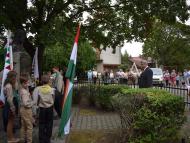 Előbb szentmisét tartottak a nagymegyeri Szent Miklós-plébániatemplomban, majd a közeli Szent István-szobornál folytatódott az ünnepség. A résztvevőket Bittera Zsuzsanna helyi Csemadok-elnöke köszöntötte, köztük Jankovics Gyula tanácsot Magyarország nagykövetségéről, Berényi Józsefet, Nagyszombat megye alelnökét, Polák László és Soóky Marián megyei képviselőket is. A magas színvonalú kultúrműsorról Csémi Csillag Virág és Zsoldos Virág Ágnes gondoskodtak.